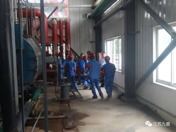 為貫徹落實特種設(shè)備安全生產(chǎn)活動要求,7月19日,山東九鼎經(jīng)過精心籌劃,組織開展了鍋爐蒸汽泄露的安全應(yīng)急救援演練活動。莘縣市場監(jiān)督管理局副局長王子春、古云鎮(zhèn)副書記張玉超等領(lǐng)導蒞臨現(xiàn)場觀摩。