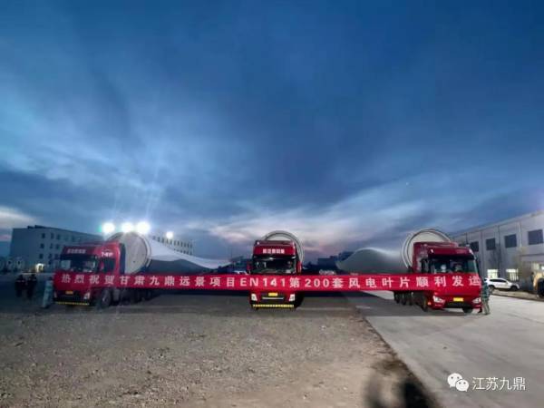 12月9日,甘肅九鼎遠(yuǎn)景項(xiàng)目第200套EN141風(fēng)電葉片完成裝車,成功發(fā)往陜西榆林。