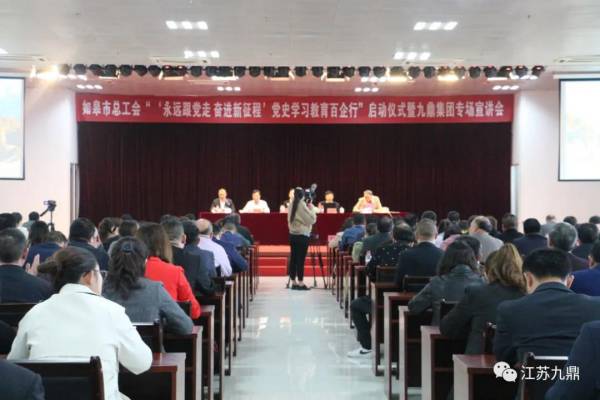 如皋市總工會(huì)“‘永遠(yuǎn)跟黨走 奮進(jìn)新征程’黨史學(xué)習(xí)教育百企行”啟動(dòng)儀式暨首場(chǎng)宣講會(huì)在九鼎集團(tuán)舉行儀式暨首場(chǎng)宣講會(huì)在九鼎召開(kāi)